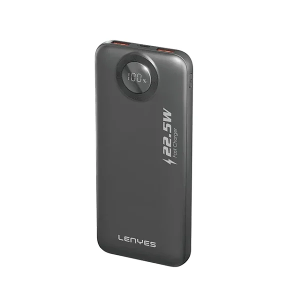 Powerbank de hasta 10.000 mAh con carga rápida de 22,5W y pantalla digital que muestra el nivel de batería en tiempo real. Ofrece entradas Micro y Tipo C, y salidas USB y Tipo C compatibles con múltiples protocolos de carga rápida. Compacto, eficiente y listo para acompañarte a donde vayas.