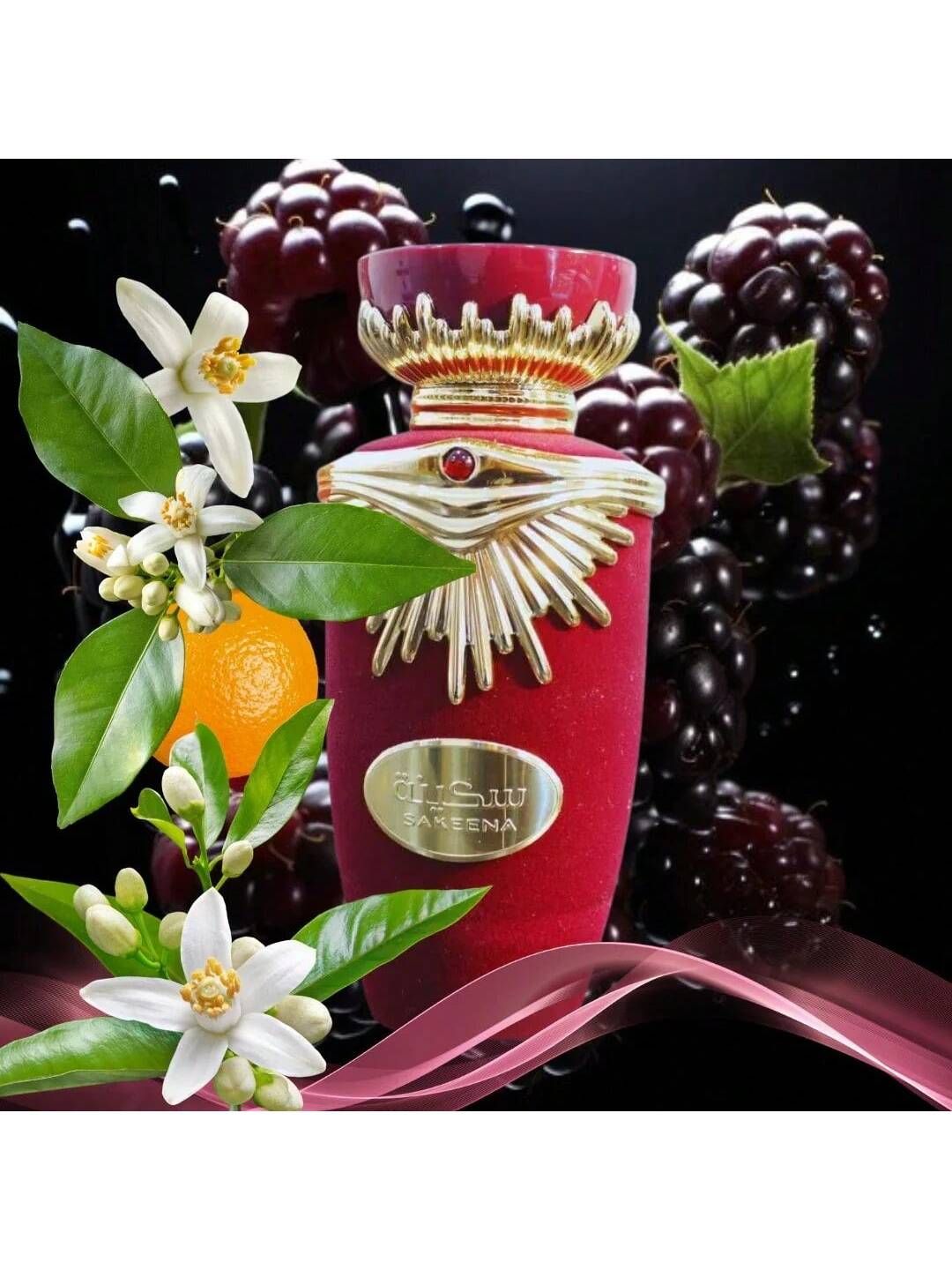 Sakeena es una fragancia que cautiva por su dulzura sofisticada y su feminidad radiante. Comienza con un estallido fresco de notas frutales y cítricas, que dan paso a un corazón de jazmín, flor de azahar y suaves matices avainillados. Su fondo cálido de almizcle, ámbar y maderas delicadas aporta profundidad y una estela seductora que perdura con gracia.
