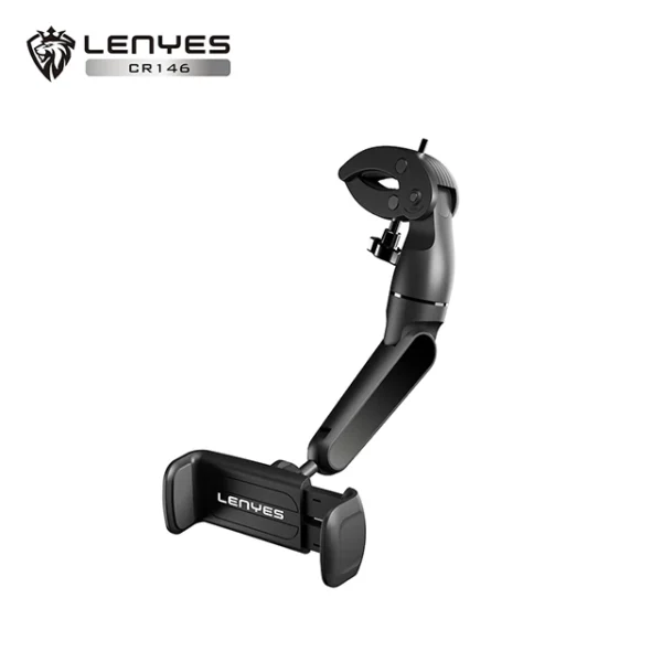 Soporte universal para retrovisor con rotación 360°. Diseño plegable que no bloquea la visión y permite ajustar el ángulo fácilmente. Ideal para cualquier smartphone.
